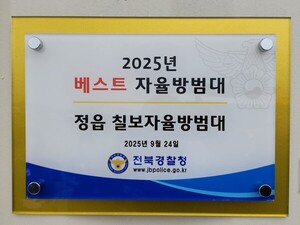 전북특별자치도자율방범연합회(회장 경세광)은 24일 오전 전북경찰청 주관 '제80회 베스트자율방범대 현판식' 행사에 참석했다고 밝혔다.이번 현판식은 정읍시자율방범연합대 칠보지대가 우수한 평가로 선정되었으며 경세광 회장을 비롯해 연합회 임원들과 많은 내빈들이 참석해 함께 축하의 마음을 전했다.아울러 현판식에 앞서 방범대 발전에 기여한 유공대원들에 대한 표창 수여도 진행됐다.경세광 연합회장은 "평소 지역을 위해 솔선수범하며 봉사 앞에서는 하나된 마음으로 임하는 정읍연합대의 모습이 생각난다"며 "그런 연합대에서 칠보지대가 더욱 빛나는 역할