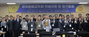 한국원불교학회(회장 박광수 원광대 명예교수) 학술발표회 및 정기총회가 21일 원광대 숭산기념관에 개최됐다.학술발표회는 양은용 교수의 ‘원불교학회의 정체성 및 걸어온 길과 향후 방향성’을 주제로 한 기조강연에 이어 이도하(한국예술종합학교) 교수가 ‘원불교와 개벽하는 K-영성문화’, 한성국(원광대) 교수가 ‘AI 시대를 선도할 원불교학 정립’, 장진수(원광대) 교수가 ‘마음인문학의 성과와 학문적 과제’ 등을 발표했다.또한, 토론을 통해 원불교 사상을 다양한 학문 분야와 시대 변화에 응용하는 것에 대해 논의하고, 관심을 끄는 계기를 마련
