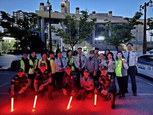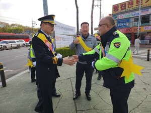 익산시자율방범연합대 신동자율방범지대(지대장 오승록)은 교통사고 예방을 위해 익산경찰서와 합동으로 교통안전캠페인을 실시했다.원광대학교 사거리에서 15일 오전 7시부터 진행된 캠페인에는 익산경찰서 박성수 서장을 비롯해 신동지구대, 신동자율방범대, 모범운전자회, 교통선진질서위원회 등 80여 명이 참석해 현수막, 피켓, 어깨띠 등을 활용해 운전자와 보행자의 교통안전 수칙 준수를 독려했다.특히, 이번 캠페인에서는 출근 차량 운전자와 보행자 대상으로 피켓 활용, 물티슈와 전단지를 배부하며 시민들의 자발적인 교통법규 준수를 통한 사망사고 예방을