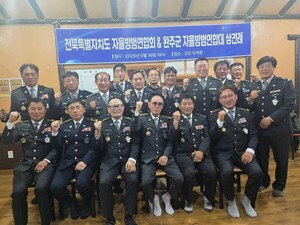 전북특별자치도자율방범연합회(연합회장 경세광)는 지난 16일 오후 완주군자율방범연합대(연합대장 박옥규)와 상견례를 통한 소통의 자리를 가졌다고 밝혔다.이날 상견례는 완주연합대 주관으로 개최되었으며 그동안 공석이었던 연합대장직을 박옥규 신임대장이 수락해 취임하며 전격적인 자리가 마련되었다는 후문이다.완주군 고산면에 위치한 두리랑 가든에서 진행된 소통의 자리에서는 먼저 도연합회 임원들의 소개에 이어 완주 연합대 소속 임원들의 인사자리로 이어졌다.화기애애한 분위기 속에서 진행된 이번 자리에서 박옥규 신임 연합대장은 "그동안 내부사정으로 인