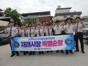 익산시자율방범대연합대 (연합대장 경세광)는 추석을 앞두고 연휴기간동안 북부시장 일대에서 연합대 산하 각 지대 대원 들이 참석한 가운데 명절맞이 재래시장 특별순찰을 실시했다.이번 순찰은 자율방범대가 해마다 명절연휴 및 집중순찰기간에 정기적 재래시장을 이용하는 시민들이 안전하게 장보기를 할 수 있기 위한 일환으로 실시하고 있다.연합대는 4일 오후 북부 시장 일대를 돌며 명절을 앞두고 시민 안전과 범죄예방을 위해 약 1시간 동안 대원들과 함께 시장 내부를 돌며 순회순찰을 실시했다.익산시자율방범연합회 경세광 회장은 “금융권순찰에 이어 이렇