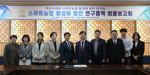 익산시의회 의원연구단체 「스마트농업 활성화 방안 연구회(대표의원 김진규)」는 지난 10월 28일 「익산시의회 스마트농업 활성화 방안 연구용역」 최종보고회를 개최했다고 밝혔다.이날 보고회에는 김진규 대표의원을 비롯하여 김미선·김순덕·송영자·정영미 의원 등 5명의 의원과 한국농식품정책학회 전북대 백승우 교수, 관계 공무원 등 20여 명이 참석해 7개월간 추진된 연구결과를 공유하고 의견을 나눴다.이번 연구용역은 기후위기와 농촌 고령화에 대응하기 위한 지역 맞춤형 스마트농업 추진 전략을 마련하기 위해 추진됐으며, 지난 4월 착수보고회를 시