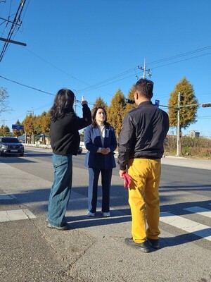 익산시의회 보건복지위원회 이중선 의원(중앙·평화·인화·마동)은 지난 10일(월), 목천로 목천원주아파트 정문 일대의 주민들의 교통안전 문제로 불편을 겪는 시민들의 의견을 듣고자 현장을 방문했다.해당 구간에는 과거 신호위반 및 과속단속카메라가 설치되어 있었으나 내구연한 경과로 인해 2023년 전북지방경찰청에서 철거했다. 이후 단속 공백이 생기면서 차량의 과속과 신호위반으로 인한 교통사고 발생 위험이 높아지고 있다. 특히 원주아파트 정문은 대로변과 인접해 있고, 시야 확보가 어려운 구조로 인해 직진 차량과 아파트 입·출입 차량 및 주민