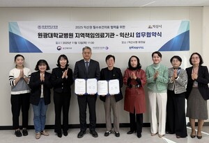 원광대학교병원(병원장 서일영)이 지난 13일(목) 익산시와 익산시청 6층 회의실에서 퇴원환자 맞춤형 연계 체계 구축 및 돌봄 강화를 위한 업무협약을 체결했다. 이날 진행된 업무협약에는 익산시 나은정 복지국장을 비롯, 복지정책과, 노인복지과 업무 관계자들과 원광대학교병원 지역책임의료센터 이영훈 센터장, 지역책임의료센터 관계자들이 참석했다. 이번 업무협약은 원광대학교병원 지역책임의료센터(센터장 이영훈)의 ‘퇴원환자 지역사회 연계사업과 재활의료 및 지속관리 협력사업’의 활성화를 위해 마련되었으며, 원광대학교병원의 전문적인 의료 역량과 익