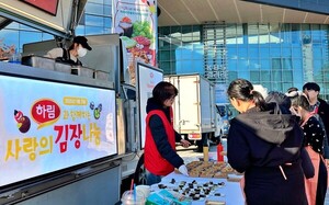 종합식품기업 ㈜하림(대표이사 정호석)이 지난 21일 KBS전주방송총국 시민녹지광장에서 열린 '2025 사랑의 김장나눔 축제'에 후원 기업으로 참여하고 임직원 봉사활동을 펼치며 지역 사회에 따뜻한 온기를 전했다고 24일 밝혔다.하림은 이번 행사에 임직원 30명이 봉사단으로 참여해 김장김치 담그기 활동에 직접 힘을 보탰다. 하림 봉사단은 전북자치도 내 취약계층과 독거노인 등 어려운 이웃에게 전달될 김장김치 총 10톤을 담그는 데 구슬땀을 흘렸다.특히, 하림은 축제에 참여한 약 400여 명의 봉사자와 관계자들을 위해 하림 푸드트럭을 운영