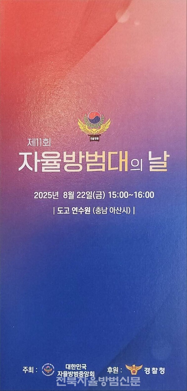 전북자율방범연합회(회장 경세광)은 '제11회 자율방범대의 날'을 맞이하여 대한민국자율방범중앙회가 주관한 기념식에 참석했다고 밝혔다.