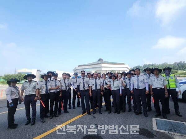 익산시자율방범연합대(연합대장 경세광)가 뜨거운 날씨가 연일 이어지는 더위 속에서 실시된 육군부사관학교 통합입교식에 참여객들의 안전을 위해 귀한 땀을 흘렸다.