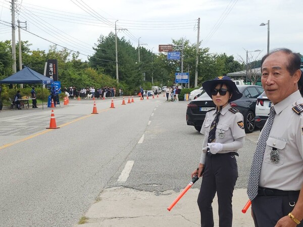 자율방범대원들이 익산시에서 인간의 한계를 극복하며 숨은 기량을 겨루는 철인3종경기 선수들의 안전한 경기를 위해 발 벗고 나섰다.
