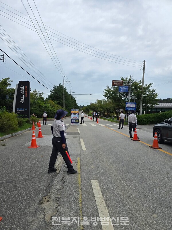 이어진 중등부 경기에서도 대원들은 사이클 및 육상 경기코스 나들목을 지키며 지휘부의 통제에 따라 일사불란하게 움직였다.