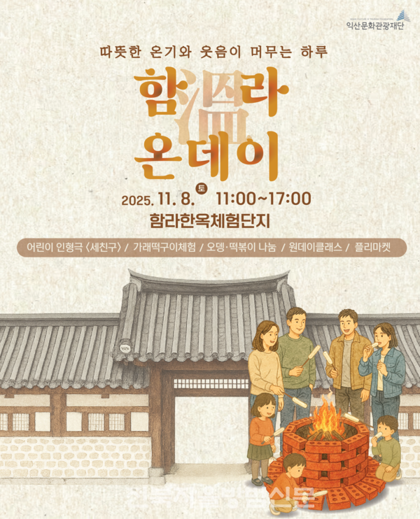 ‘함라 온(溫)데이’는 늦가을 한옥마을의 정취 속에서 시민들이 함께 어울리며 따뜻한 온기를 나누는 지역 상생형 행사로, 가래떡 화로 구이, 어린이 인형극, 플리마켓, 원데이 클래스, 간식 나눔 행사 등 다채로운 프로그램이 마련된다.