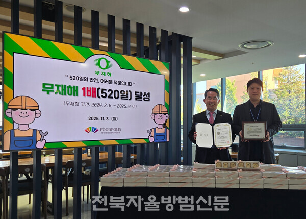 한국식품산업클러스터진흥원(이사장 김덕호, 이하 식품진흥원)은 2025년 9월 4일 기준으로 ‘무재해 운동 1배수(520일)’를 달성했다고 4일 밝혔다.