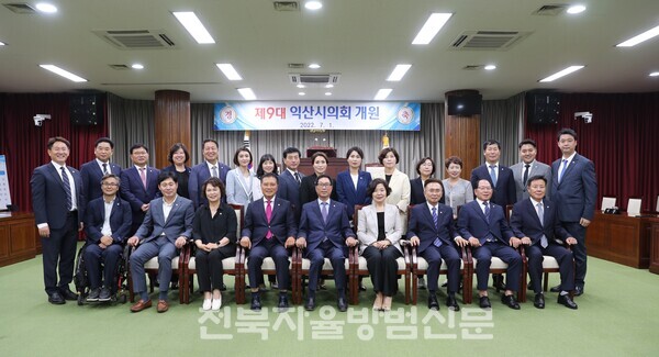 제9대 익산시의회가 개원 1주년을 맞아 3일 최종오 의장을 비롯한 의원들과 정헌율 시장, 허전 부시장, 국소단장이 참석한 가운데 ‘제9대 익산시의회 개원 1주년 기념식’을 개최했다.