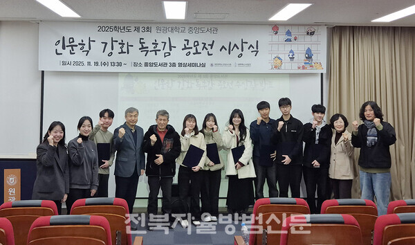 원광대학교(총장 박성태) 중앙도서관은 제3회 인문학 강화 독후감 공모전 시상식을 19일 중앙도서관 영상세미나실에서 개최했다.