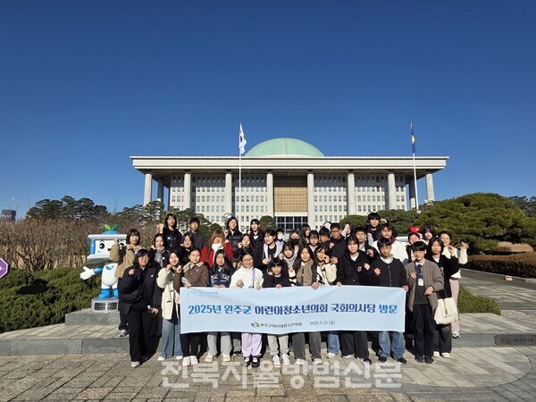 완주군 어린이청소년의회 소속 의원 60여 명이 지난 21일 국회의사당을 방문해 민주주의의 현장을 직접 체험했다.