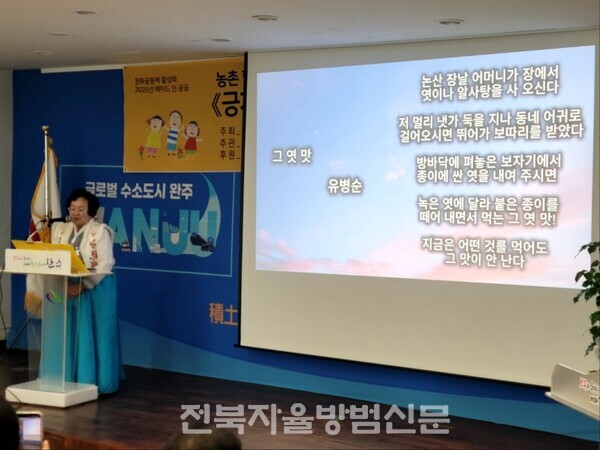 출간기념회에서는 유병순 어르신의 「그 엿맛」, 김순곤 어르신의 대표작 「긍게 내가 좋드만」 등 총 19편의 시 낭송이 진행됐다. 어르신들은 다소 떨리는 목소리로 자신들의 삶을 읽어 내려갔고, 가족과 부모님의 이야기들이 PPT와 함께 화면에 펼쳐지자 참석자들도 눈시울을 붉히며 깊은 감동을 함께 나눴다.