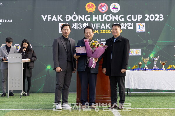 이날 행사장에 참석한 정헌율 익산시장도 베트남어로 반가운 인사를 전하며 익산을 찾은 손님들을 환영했다. 정 시장은 응우옌부뚱 주한 베트남대사와 축구공을 주고받으며 우정과 화합을 다지기도 했다.